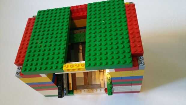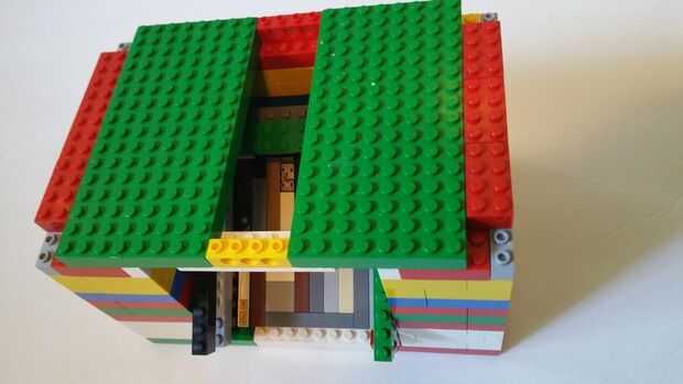 Agregar el techo mediante dos placas base de Lego tal como se muestra en las imágenes.