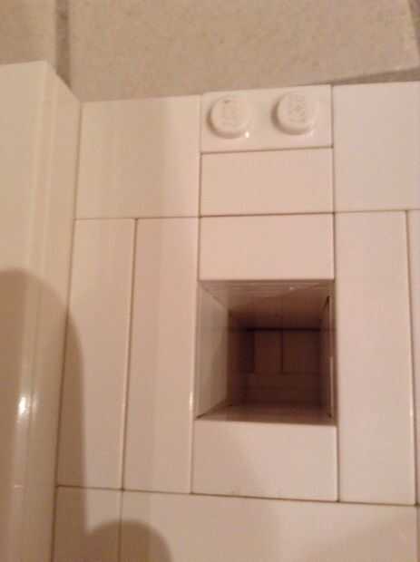 Como se puede ver he puesto ladrillos alrededor para que el botón no volar, confía en mí... Resulta que también he dejado un agujero de 4 x 4 en la máquina que es donde pones el smarties (tiene 9-10).