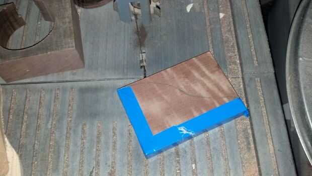 Para mi máquina, corte tres piezas que fueron 3 7/16 pulgadas por 5 pulgadas como los lados y la parte inferior de la máquina, así como una pieza de 3 pulgadas por 3 7/16 pulgadas para la parte de atrás.
