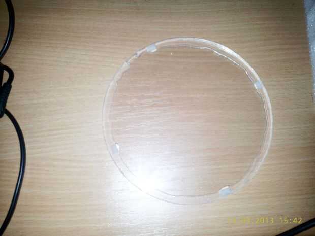 Unir ambos discos, pegarlos y dejar aproximadamente un 1 mm de espacio entre. Utilicé una pieza de plástico.