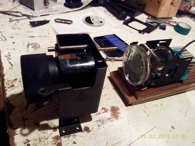 Ahora encienda el LED y la lente del proyector de diapositiva y calibrar la objektiv, que conseguir una buena foto en la pared.
