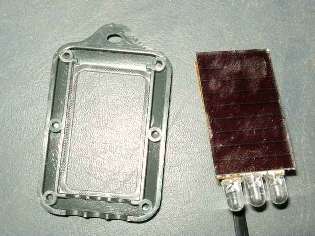 Abrir una de las luces solares de llavero. Usé un cuchillo Xacto y había enclavada en la costura.