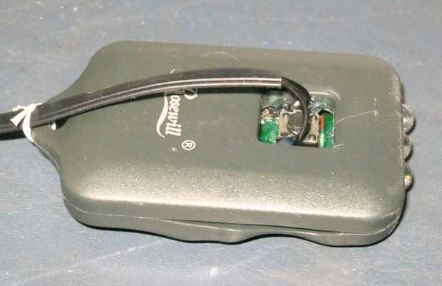 Soldar dos cables a la placa donde se une la batería (ver imagen). He utilizado un trozo de cable telefónico de dos hilos. Esto fue una mala elección como el alambre es muy duro y muy difícil de pelar apagado el aislamiento. Los cables se rompieron y tuvo que volver a colocar y caliente, pegar los cables a la placa. Pero el cable de 10 pies de largo.
