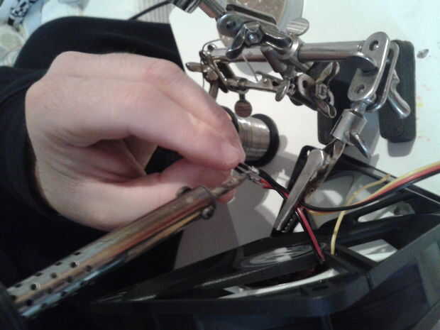 - Cortar los cables de los disipadores y conecte a la fuente de alimentación con hierro de soldadura.