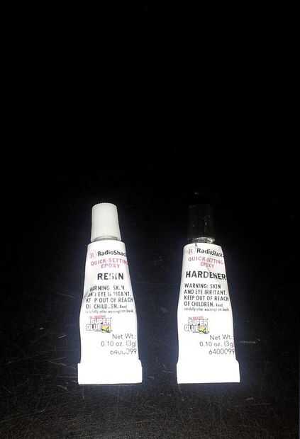 -Epoxi de secado rápido. (JB soldar funcionaría. Pegamento marca 2 Parque transparente de epoxy es lo que usé)