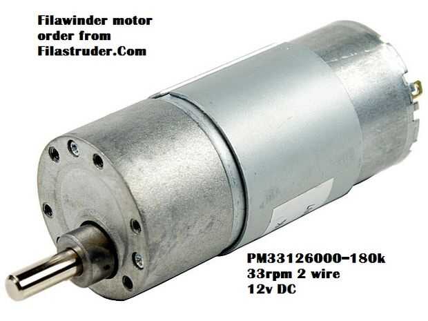3. 2 cable del motor de la C.C. de 12 voltios del Filastruder.com y la correspondiente fuente de alimentación 2A. (Este es el mismo motor y la fuente de alimentación utilizada en la Filawinder de Ian Johnson).