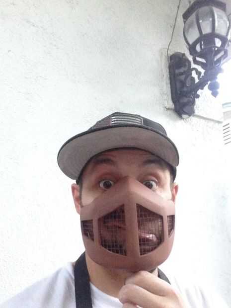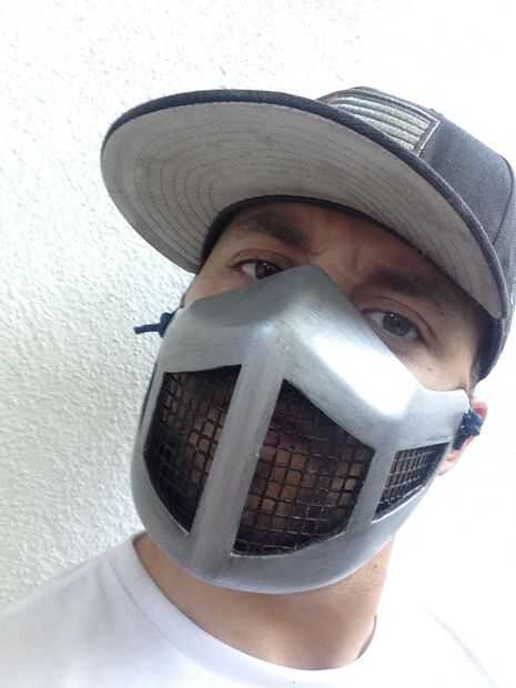 La máscara entonces fue recortada y he añadido algún alambre de pollo en el interior de ella para actuar como el área de la parrilla en la máscara. Esto parece ser lo más parecido a lo que fue en la película.
