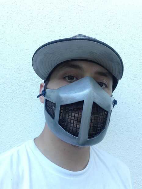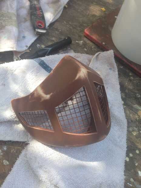 La máscara fue cubierta en la cartilla del llenador más y luego con pintura en aerosol Krylon metalizados plata.