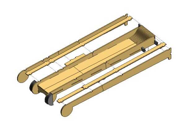 La rampa se está cubierta con corcho y la parte delantera de la rampa tiene un soporte de metal para proteger contra tiros díscolos.
