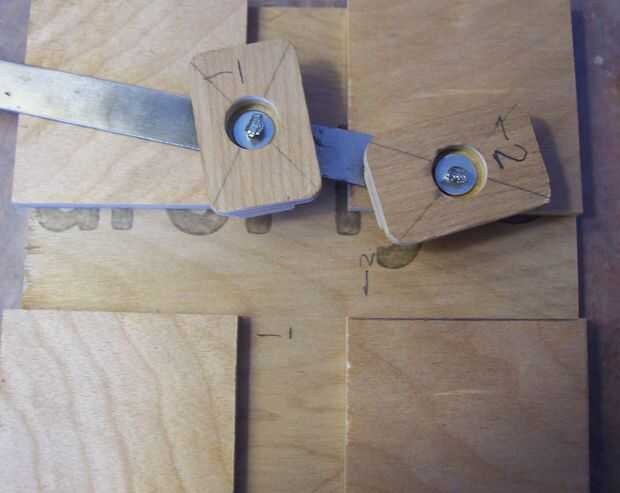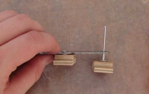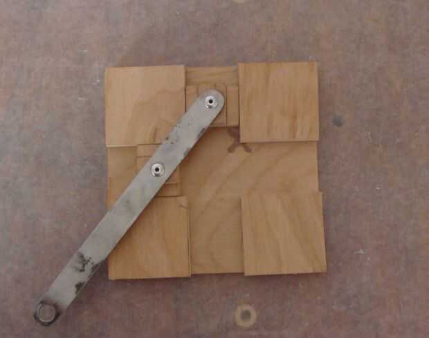 2) los reguladores están montados como sigue: la palanca está en la parte superior con una arandela debajo con el fin de eliminar la capa superior. Después de eso viene el deslizador con la capa superior (más estrecho) más cercana a la palanca. Dentro del contador de jabalí por debajo de la barra deslizante es otra arandela para que el remache no tira pensó la madera. Utilizando un remache 1/8 de pulgada, acero o aluminio está muy bien, conecte los reguladores a la palanca.