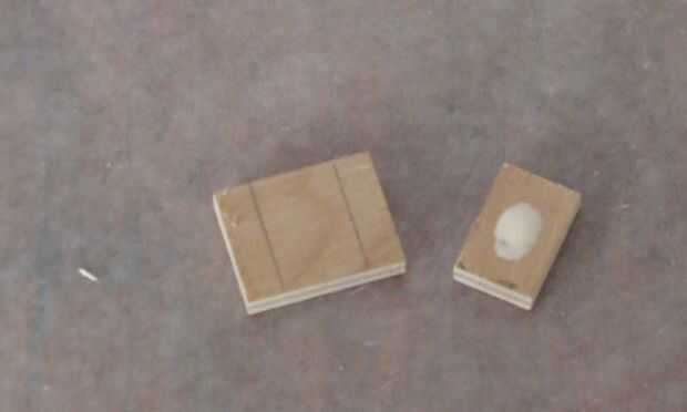 1) medir la posición de la capa superior en la parte inferior. El borde de la parte superior debe ser 1/4 del borde de la parte inferior. Utilicé un calibrador del dial, pero una regla de acero es aceptable. La manera que pegan en la capa superior compensará cualquier discrepancia en esta medida. Unir las dos capas del deslizador y sujete. He encontrado que si usted hace una botella grande, cerca de 4 pulgadas y luego corta a la longitud es más fácil. También taladrar los orificios después de que han sido pegado junto ayuda a mantener los agujeros bien alineados. Permita que el pegamento se seque. Redondear las esquinas como se muestra en los dibujos.