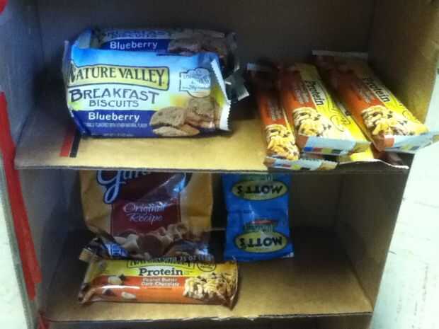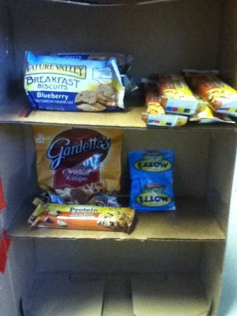 Ahora, sólo añadir snacks y caramelos en los dos niveles. (Opcional: también puede crear su propio cojín "número clave" en la parte superior derecha de la caja de zapatos para que se vea más parecido a uno real.) Y ya está! Almacenamiento ideal para aperitivos y dulces! Y bueno para mostrar también.