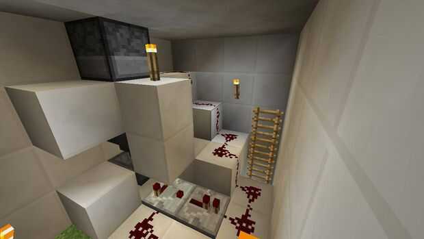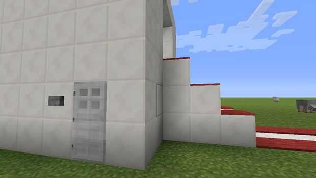 Ahora coloca un botón en el lado izquierdo del gotero. Ahora este paso es opcional así que coloque sus escaleras y bloques al lado de ellos. ahora si desea colocar sus marcos de artículo que desee y poner sus cosas que quieres en la máquina expendedora. Y si lo desea pueden poner alfombra en el lado de las escaleras. Ahora ve al lado del edificio y la rotura de 2 cuadras en hacen orilla no rompes cualquier redstone. Ir dentro y lugar escaleras en el interior de la pared para levantarse, subir y poner lo que quieras dar en el depósito de la máquina expendedora.