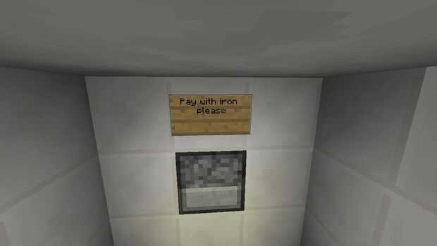 Ahora hacen como una pequeña sala en la parte posterior del gotero. y colocar alfombras en el suelo para tapar la tolva. El lugar un signo sobre la espalda del gotero que dice lo de pagar. Y como un pequeño edificio en el redstone.
