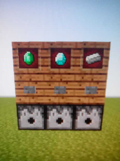 Se trata de un complejo pero bien vale la máquina expendedora de redstone. Poner una esmeralda en la parte inferior y haga clic en el botón debajo de la estructura del artículo para lo que es en el marco del artículo.Inspirado por el Sr. cangrejoPaso
