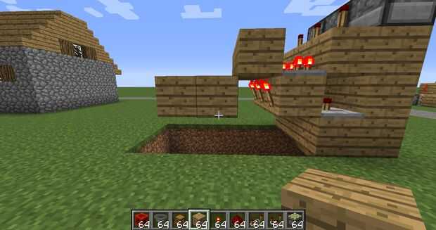 Ir a la fila de antorchas de redstone y construir 2 fila de bloques va hacia atrás.