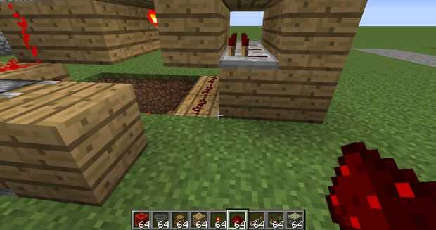 3 cuadras de frente, hacer una fila de bloques en todo el agujero y poner polvo de redstone en la parte superior.