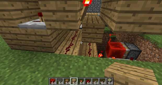 Poner 2 bloques por encima de la pieza de redstone que acaba de hacer para separar la plaza en forma de pieza.
