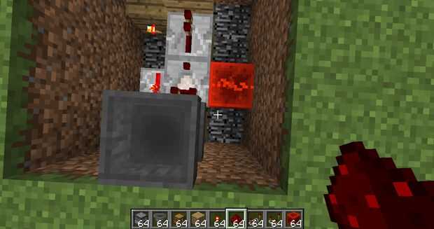 Ir a la parte delantera y en el lado derecho del comparador de, coloque un bloque de redstone con polvo de redstone en él.