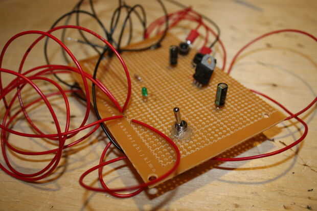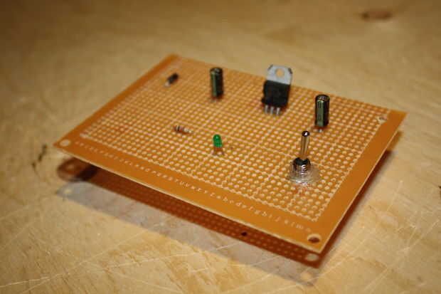 Una vez haya completado esto, prueba el tablero usando el panel solar o una batería de 9V y mida el voltaje en diferentes puntos para que la Junta está trabajando y que la tensión correctamente se está reduciendo a 5 voltios. Continuar al paso siguiente.