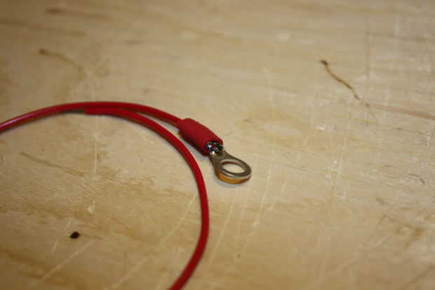 - En el poder las conexiones entradas y tierra, utilice un trozo de cable con un terminal de presión en una finalicen y el otro a la Junta de la soldadura