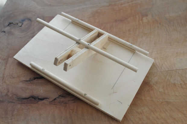 Como se puede ver en fotos esta máquina es el resultado del camino y proceso de error en lugar de adecuado diseño mecánico. No tengo dibujo con dimensiones de precisión. Pero creo imágenes adjuntas son lo suficientemente buenos para ilustrar cómo se construyó y cómo funciona. Tapa de la caja es más complejo componente aquí. Atención a la diferencia entre la tapa y palillo redondo trasero. El espacio debe ser lo suficientemente amplio como para permitir que 2 mm de madera contrachapada caber en a él, pero no demasiado ancho. Esta brecha permite deslizamiento de la tapa a lo largo de las tiras de madera contrachapada de caja.