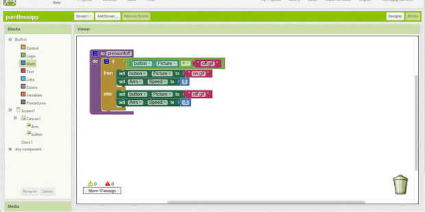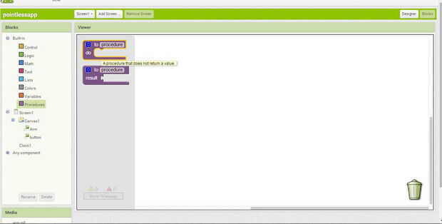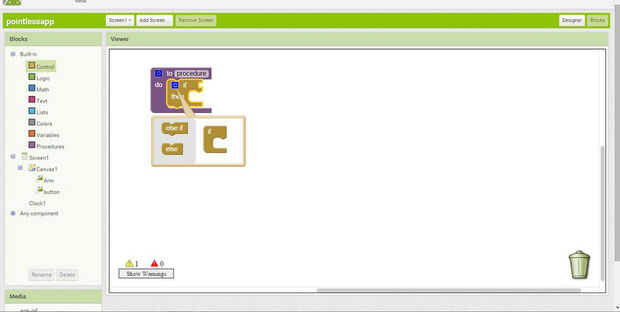 Presione el botón de bloque de la derecha arriba a los lados de las propiedades y ahora puedes ver un lienzo vacío, esta parte del bloque es un poco complicado, pero fácil cuando se pesca. funciona como un rompecabezas para que seleccione algunos bloques y pone en otros.