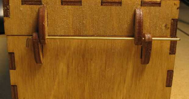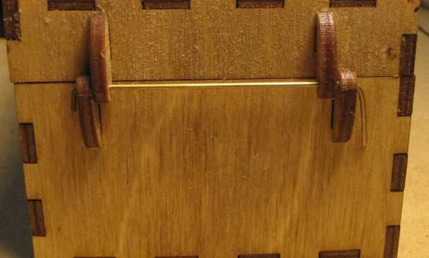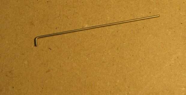 Utilizando sus pinzas, doble aproximadamente 1/4" de la varilla de latón a un ángulo de 90 grados. Deslice el pasador de la bisagra a través de las ménsulas para bisagras ubicados y luego cuidadosamente el otro extremo de la curva. No aplique mucha presión a las ménsulas para bisagras ubicados ya que esto puede causar el soporte dividir. Ajuste que fin de pasador de la bisagra apenas doblada para que coincida con el tamaño del otro lado.