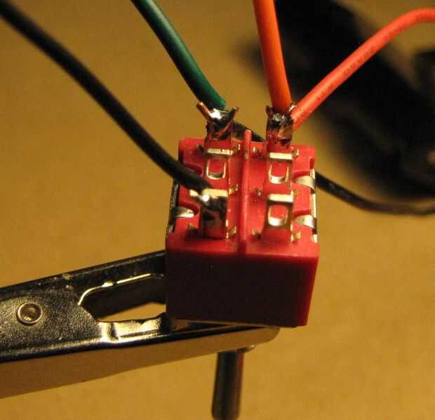 Corte aproximadamente 3 pulgadas de su cable negro y recorte 1/4" de ambos extremos. Conectar uno de alambre a la parte superior izquierda terminal del interruptor de cambio.