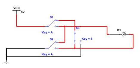 VCC es la fuente de energía, en este caso, nuestro paquete de baterías de 6 voltios. Los dos primeros interruptores, S1 y S2, representan el interruptor. El último interruptor, S3, representa el interruptor de palanca. No el cable a tierra derecho este interruptor. El motor es designado por el círculo con el M dentro de ella, marcó la K en este diagrama.