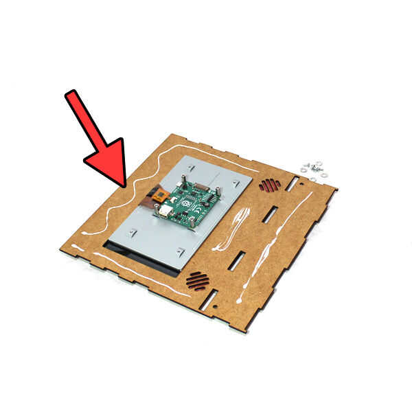 Cuando el pegamento se haya secado, instale el Raspberry Pi tal como se indica en las instrucciones que viene con la pantalla, también colocar los disipadores de calor y conecte el adaptador de LAN inalámbrico (a menos que Pi 3...)