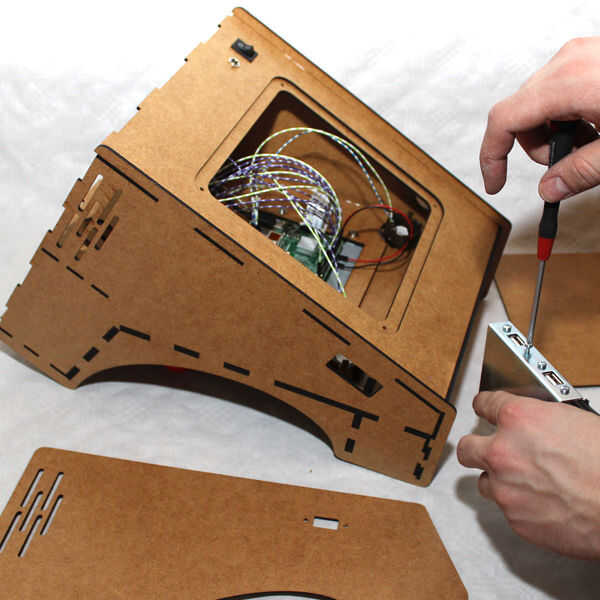 Primero querrá quitar la tapa de mantenimiento en la parte posterior para tener acceso a la Pi.