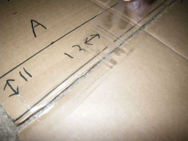 Una vez se presentan, tanto de la cinta una pieza juntos. Con cinta adhesiva la parte inferior una pieza a la parte superior de la pieza C. Luego la cinta la superior izquierda de la B a la parte superior una pieza. Asegúrese de que no a cualquier otro tipo de cinta.