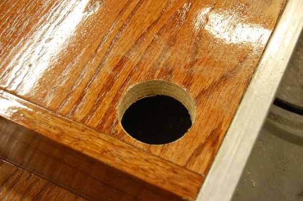 Con el orificio del tamaño apropiado de sierra, cortar un agujero a través de la superficie de la mesa cerca de la máquina, en cualquier extremo del cable se conecta a la máquina.