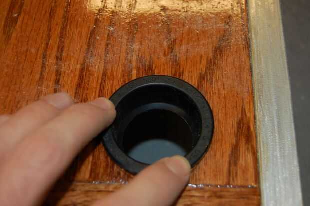 Usted puede comprar el cable a medida acceso agujero insertos, pero suelen ser caros por lo que son. Usé una conexión de tuberías de ABS que yo tenía por ahí. Creo que esta fue una reducción de acoplamiento; 1.5" a 1.25" o algo. Lo único aquí es que el cable es capaz de pasar a través del orificio.