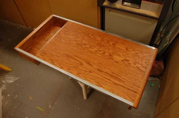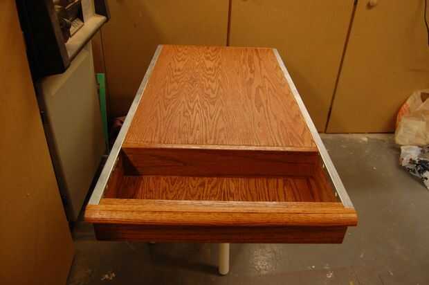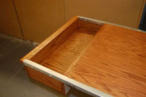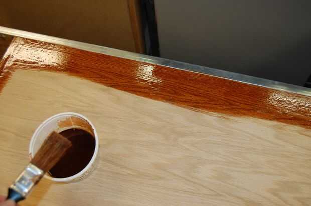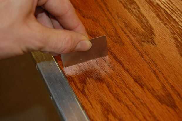 Apliqué dos capas de tinte y acabado de tres capas de poliuretano de alto brillo para mi Insertar hoja, utilizando un cepillo ordinario. Después de las primeras y segunda capas de poli eran seco, utilicé un "raspador de gabinete" para raspar cualquier golpes y pedazos de polvo que quedó atrapado en el acabado. Encontrar que un raspador hace un mejor trabajo que el papel de lija, ya que sólo se quita la piel y no la mancha, también.