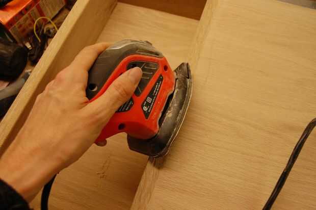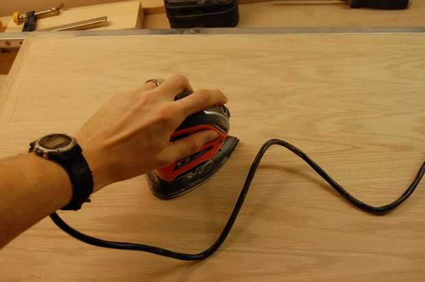 Empezar por lijar todas las superficies planas con la mano o con una lijadora de Palma. Todas las superficies deben ser muy suaves, ya que no quiero nada para coger en la tela del edredón. Lije los bordes y áreas difíciles de alcanzar con la mano con el grado apropiado de papel de lija. Cuando todas las superficies han sido lijadas, vacío de cualquier serrín. Para asegurar que todo el polvo se ha ido, limpie las superficies con trapo pegajoso así.