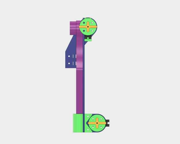 La máquina entera se hace para acomodar el cepillo de dientes que es la parte principal y más compleja del sistema. El titular tiene dos articulaciones servo actuada para accionar sus subconjuntos: la cabeza y la base. Piezas cortadas por láser son color azul oscuro mientras que las piezas impresas en 3D verde neón.