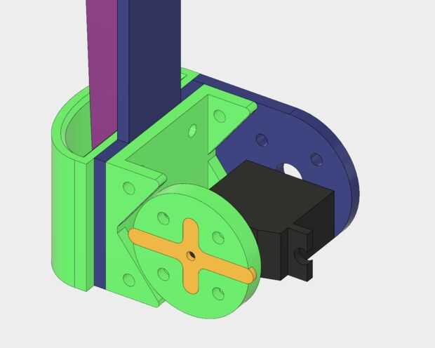 El ensamblaje del cabezal asegura el cepillo de dientes por una caída. El diseño está inspirado en las clases de barras de menú desplegable que encontrará en un asiento de montaña rusa. Un solo micro servo acciona los brazos que se llevan a cabo por dos distanciadores. El servo se conecta a la placa de corte por láser principal mediante un adaptador 3D y se sujeta con dos tornillos 4-40. El bar cuenta con cuatro ranuras que es tejido elástico negro, proporcionando un medio firme, pero flexible para asegurar el cepillo de dientes.
