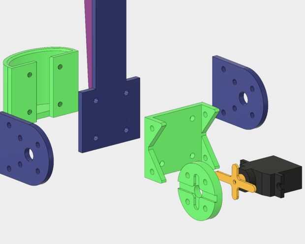 Las bases consiste en una pequeña taza impresa en 3D para mantener el cepillo caiga. Otro adaptador actúa como un corchete angular de cierre para la fijación de las juntas de corte por láser que son accionadas por servo micro de la base. El servo puede mantener posición y gire hacia abajo después de que el cepillo de dientes se ha cargado en la Asamblea. Las placas se sujetan con ocho tornillos 4-40-cuatro en la parte posterior de la placa principal y dos para asegurar cada una de las placas laterales atadas servo.