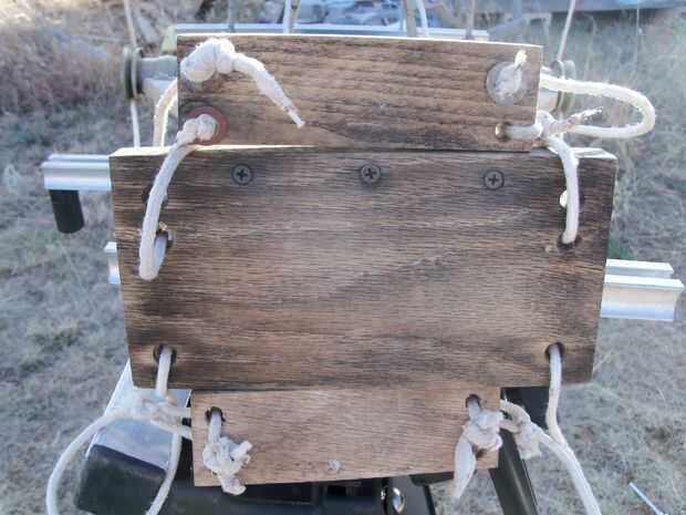 Este tiene dos partes la Junta de anillo (lo explicaré más adelante) que se acopla a la parte posterior de la base y la promociona.  La Junta de anillo es una tabla del mismo ancho de el tablón con un agujero en la parte inferior corrner y justo por encima de la media en ambos lados de la base. Conecte el extremo opuesto de los agujeros en las esquinas a la tabla base.