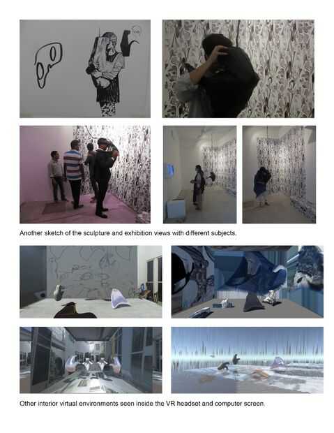La obra resultante combina interiores VR que recrearon el espacio de la Galería varias veces como exposiciones alternas. Algunos espacios VR como el de la primera imagen recordaron la disposición de una boutique, donde maniquíes se vistió y modeló "Llevó a elementos" propios. Otros cuartos fueron creados con dibujos del proceso de ideación, extendido en las paredes virtuales y también del estudio y residencia como si fue invadida por los ideales de la máquina de alien-esque de "Item".