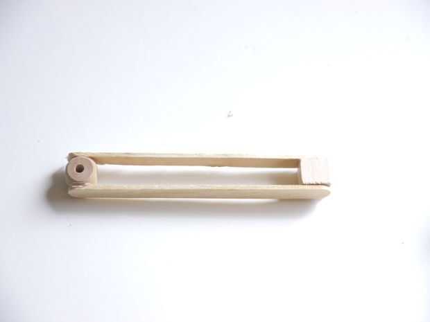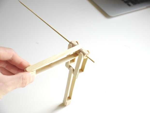 • Enrosque un pincho a través de los tres cubos con agujeros. Envuelva la cinta alrededor de los extremos para evitar que el pincho de resbalamiento, luego cortan de exceso.