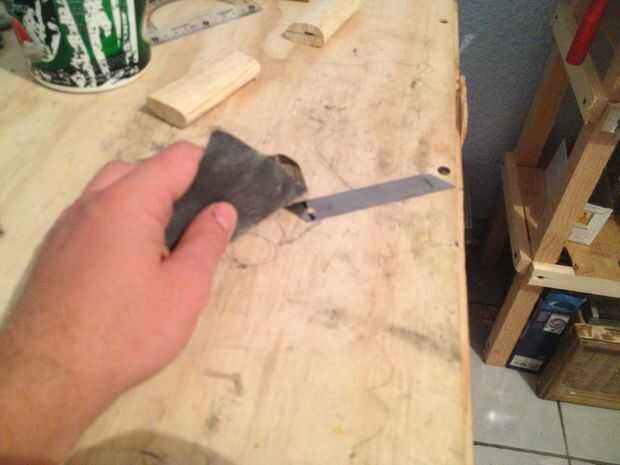 Lijar los extremos de la cuchilla para estar listo para lijar. Utilicé papel de arena de grano 220 para lijar metal.
