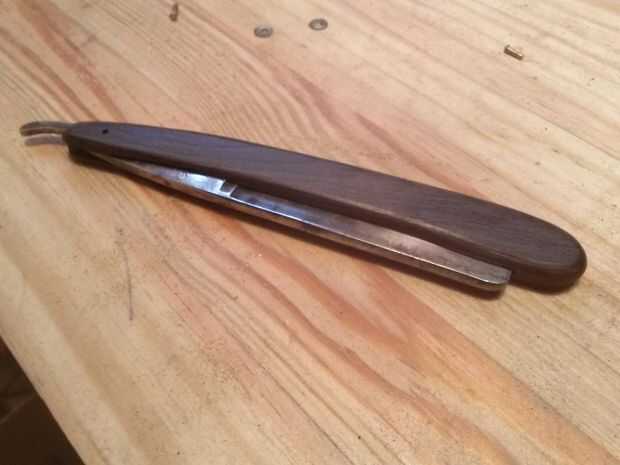 Después de que el mango se ha secado, alinee el orificio en la maquinilla de afeitar con el agujero en el mango. Luego pegar la uña o perno en él. A continuación, cortar la uña extra de como cerca de la manija como puedas. luego tomar el martillo y martillo la punta hasta que comienza a flare hacia fuera para sostener el mango y la hoja juntos.