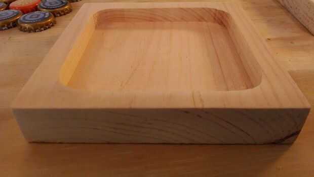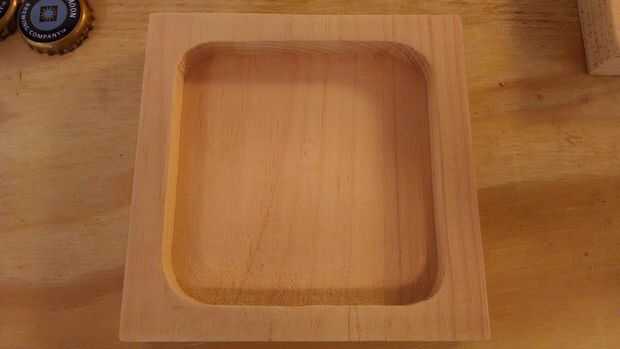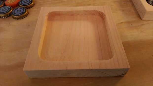 Una vez que se corta la madera, utilizar un router base de penetración con una broca recta al router a una plaza en la que residirán las cáscaras. Para mi posavasos de tapa de botella, el área enrutado era 0.5" profundo. Utilizando conchas marinas, tuve que ir un poco más ya que las conchas eran ligeramente más altas que los tapones de botellas. Sólo medir la altura de la concha más grande y van un poco más allá de esa altura para que la cáscara no pico a través de la superficie de la resina de epoxy.