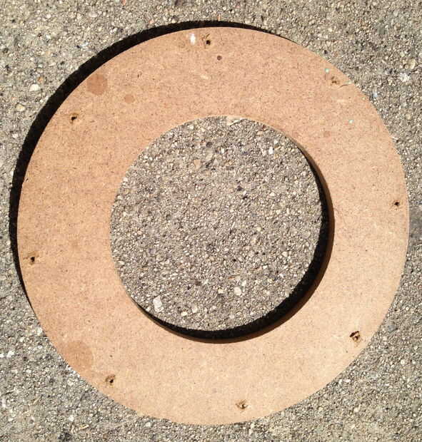Taladro 8 agujeros en el anillo de madera que se convertirá en la parte superior de tu teléfono móvil.