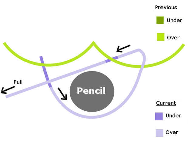 - Si trabajan de izquierda a derecha y luego con el cable por encima del objeto en una derecha a la izquierda en dirección,