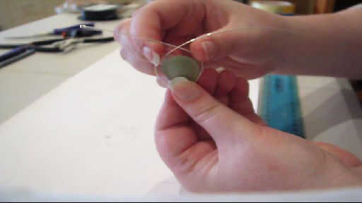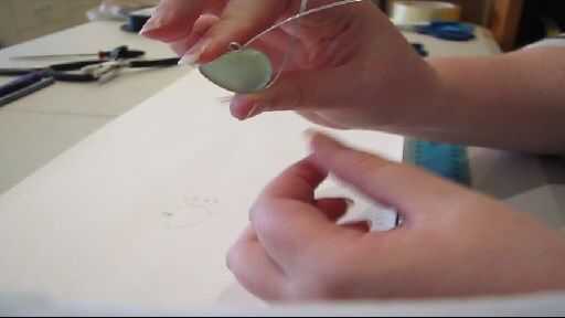 - Mientras sostiene el alambre y el pedazo de mar de cristal, doble suavemente el alambre alrededor de la pieza de vidrio de mar,