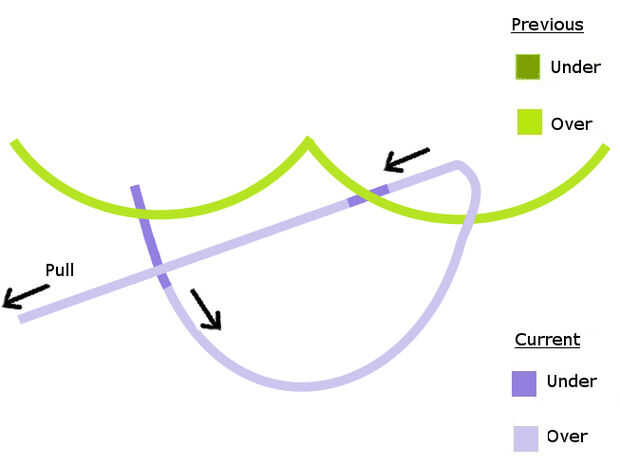 - Por ejemplo, si trabajas de izquierda a derecha, luego tire del cable a la izquierda,